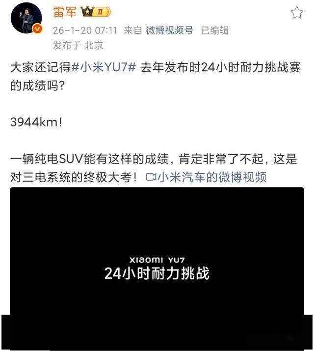 “纯电SUV能跑出这样的成绩,确实令人惊叹!”雷军的一句感慨,让小米YU7在24小时耐力挑战赛中创下的3944公里纪录再次成为新能源领域的焦点。在行业普遍面临“续航虚标”“高速掉电”质疑的背景下,这款车以超越奔驰CLA纯电原型车和保时捷Taycan的实测表现,用硬核数据证明:纯电技术的极限,远比想象中更具突破性。而这一成绩的背后,是小米三电系统在极端条件下的全面胜利。